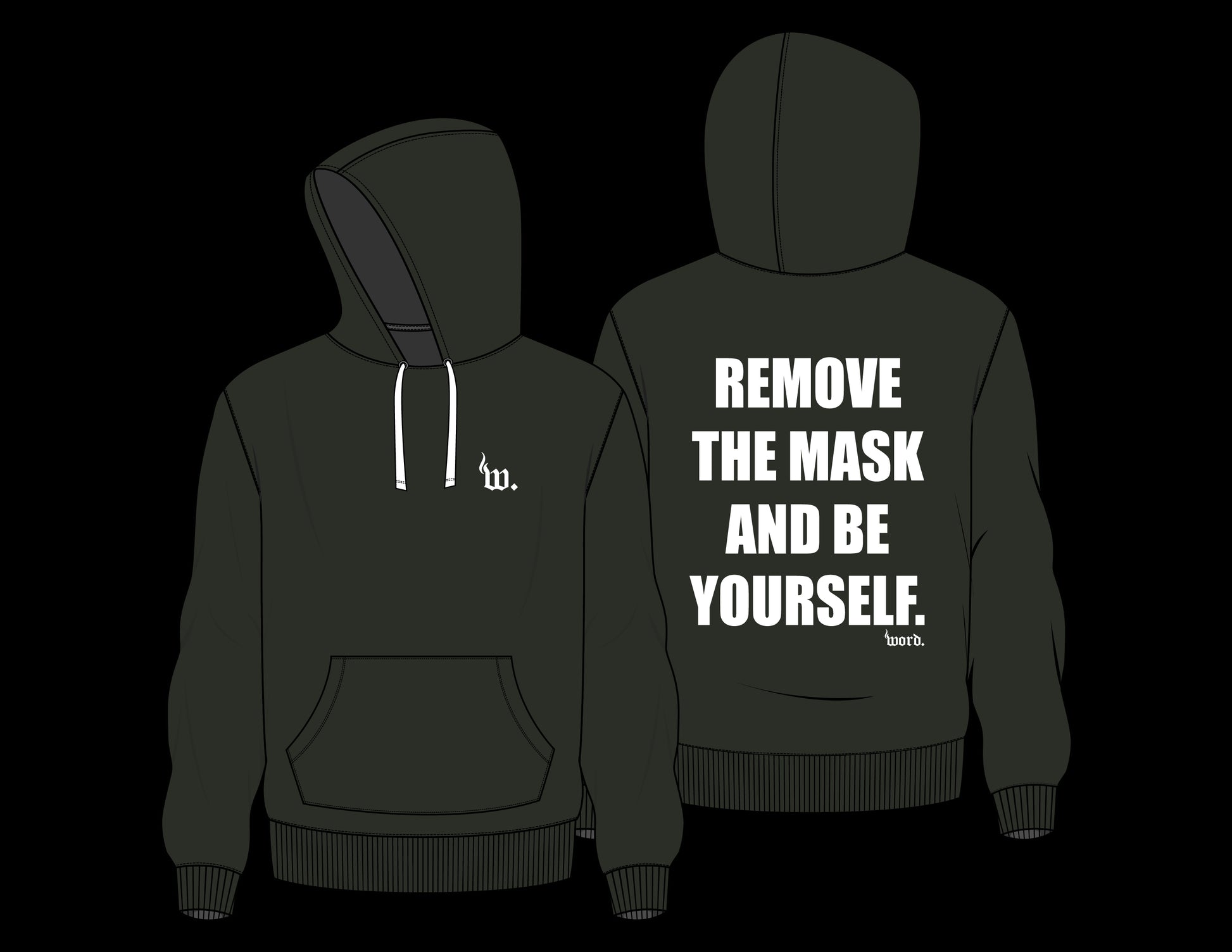 This is our mask hoodie. "REMOVE THE MASK AND BE YOURSELF."